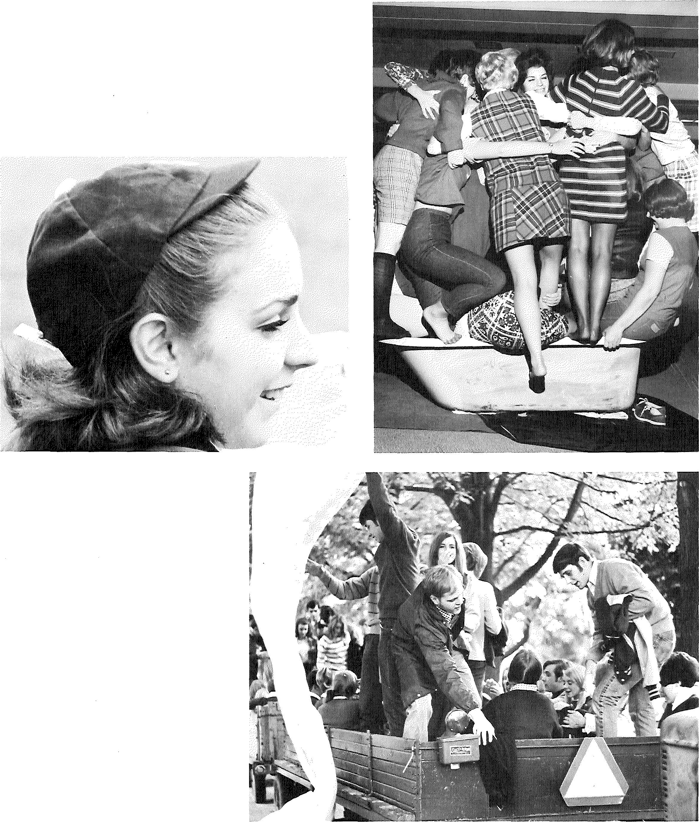 Each year the T&C staff honors a freshman woman with the traditional crown of Miss T&C. Six freshman women, each representing a fraternity, are interviewed and judged at the Interfraternity Council Dance. This year, Miss Becky Holford reigned.