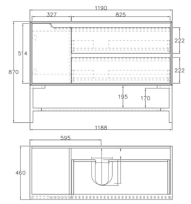 Door 1200(W) x 750(H)mm Cabinet 1050(W)x600(H)x128(D)mm