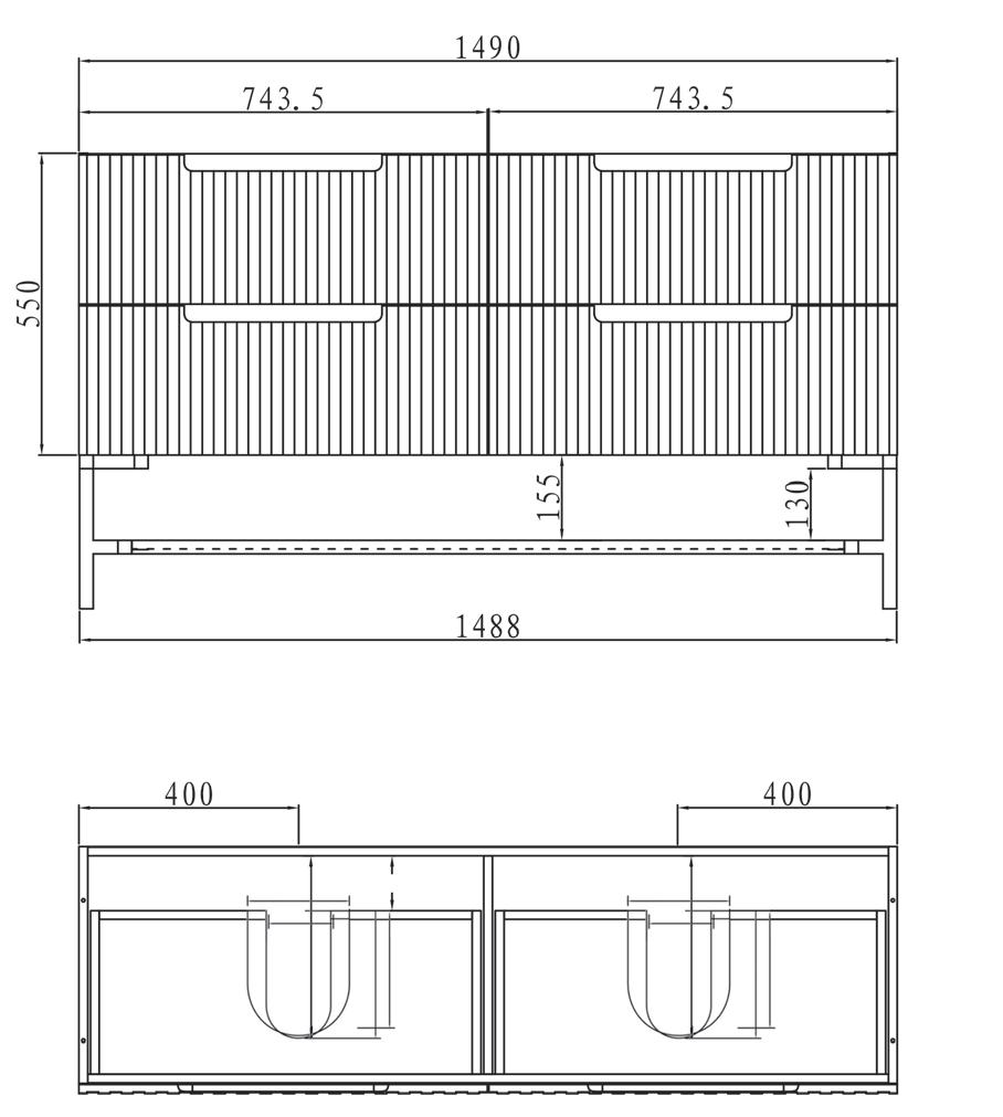 CABINET - Byron Fluted 1500mm Wall Hung Cabinet