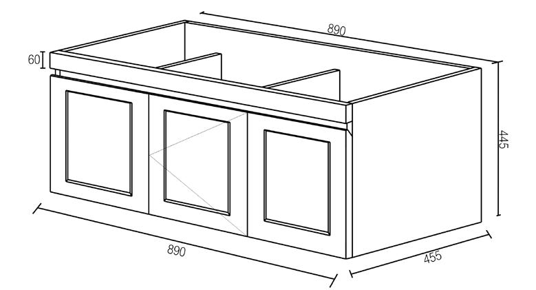 Door 900(W) x 750(H)mm Cabinet 750(W)x600(H)x128(D)mm