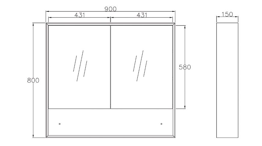 Door 900(W) x 750(H)mm Cabinet 750(W)x600(H)x128(D)mm