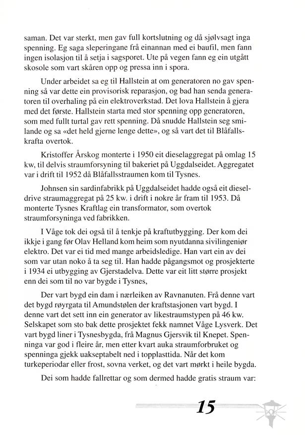 TYSNES KRAFTLAG GJENNOM 50 ÅR