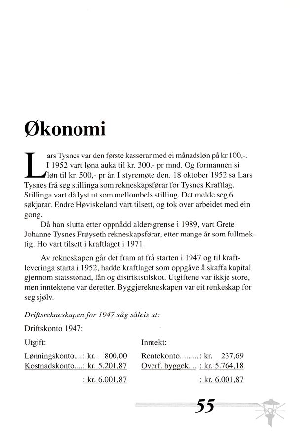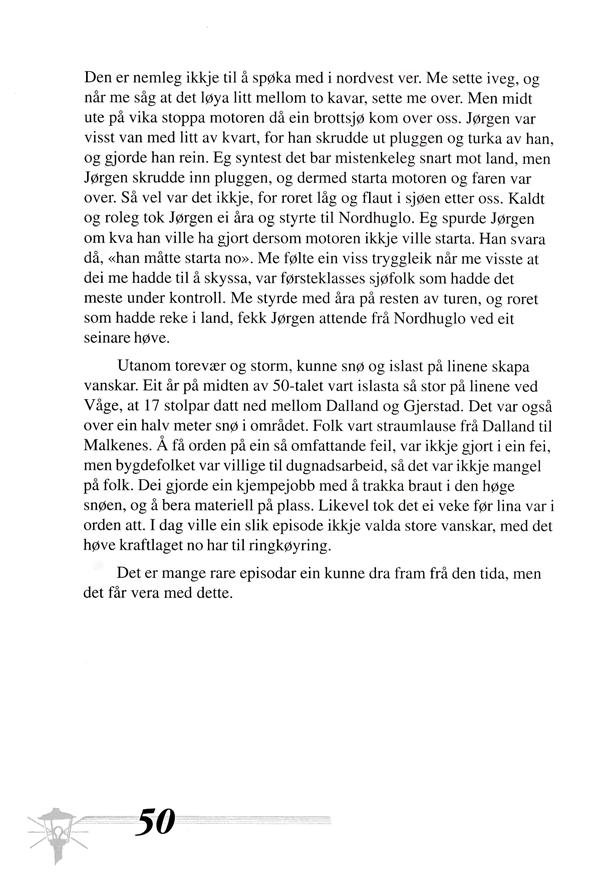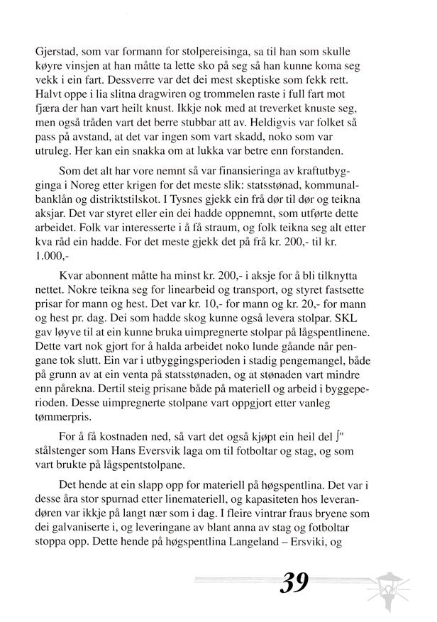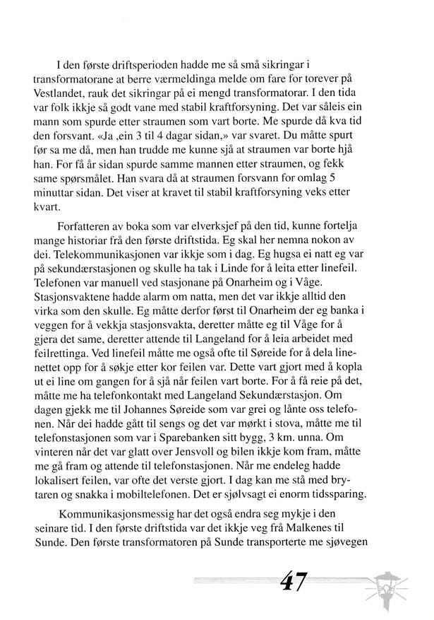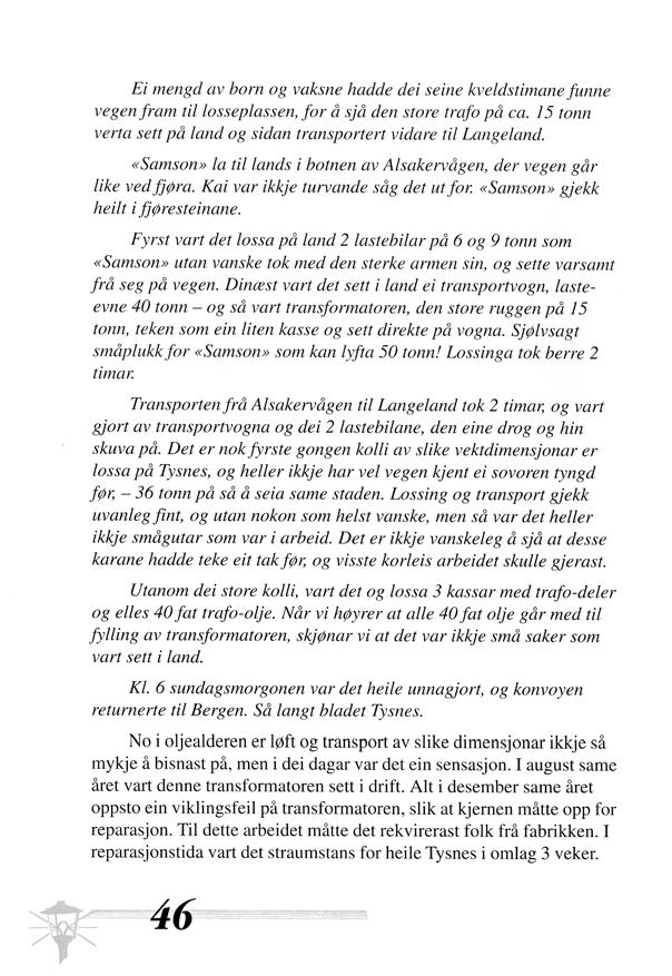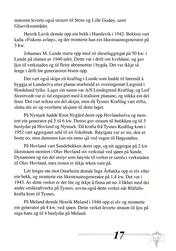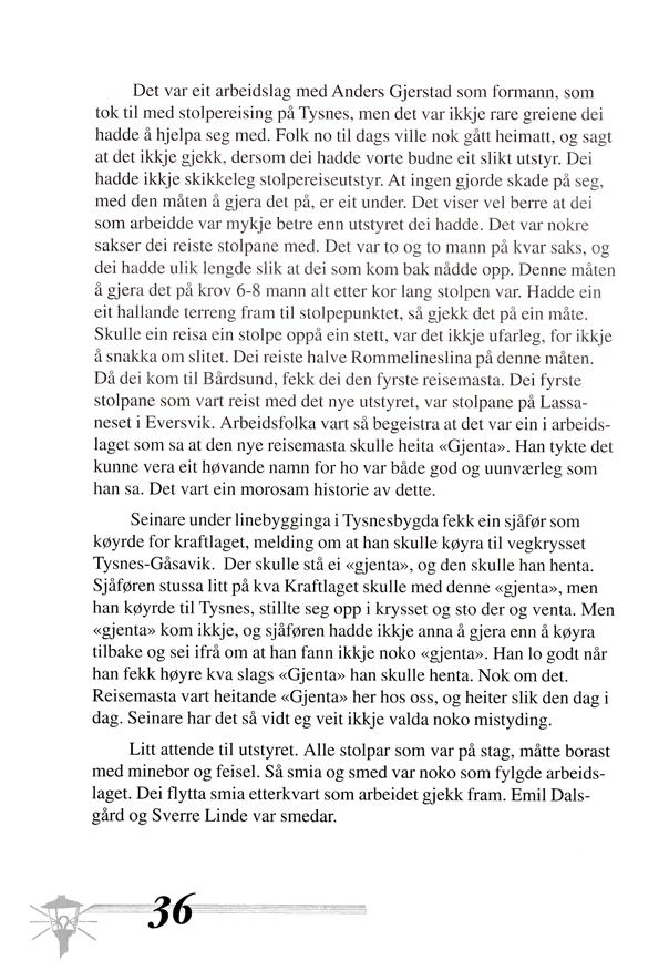 Kraftlag kjem godt fram. Samstundes er dette eit bidrag til å ta vare på ei viktig lokalhistorie for komande generasjonar.