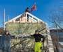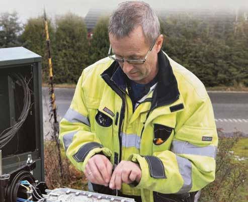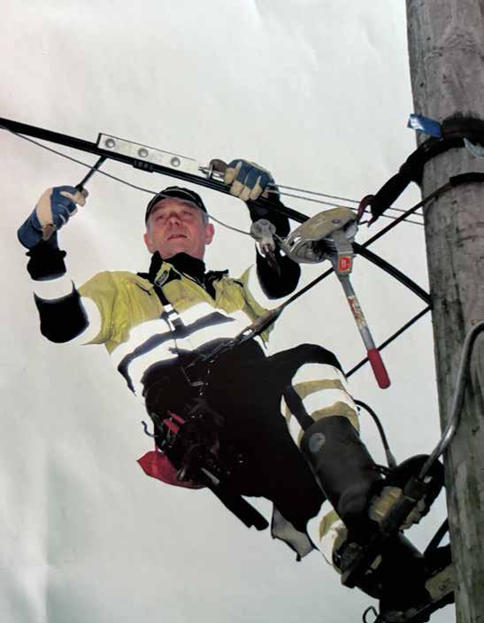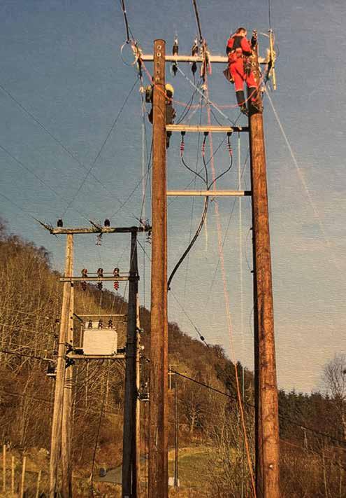 Johannes Lie i arbeid på lina. Foto: Tysnes Kraftlag
