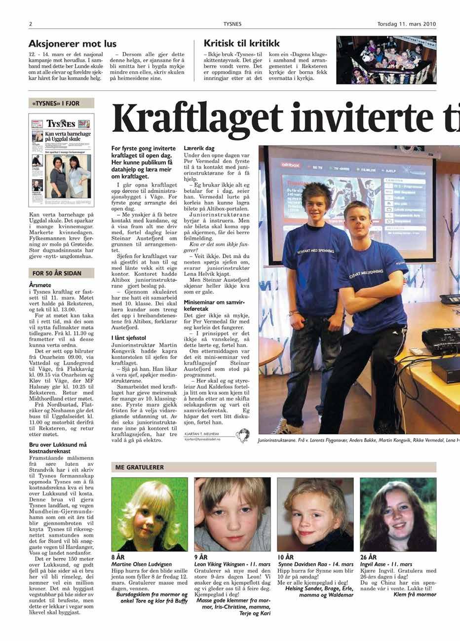 Tysnessamfunnet er privilegert som har to eigne fond til å støtte utviklinga. For at desse skal gje verdi for framtida treng me å halda liv i det store engasjementet som har vore i historia til Kraftlaget. «Me gjer liv til gode idear» er eit slagord me ofte nyttar, og då treng me at dei gode idéane kjem fram. Og ikkje minst, me treng gjennomføringskraft. Pengane er eit middel, men dei må setjast i arbeid om dei skal gje glede, det er vårt felles ansvar.
