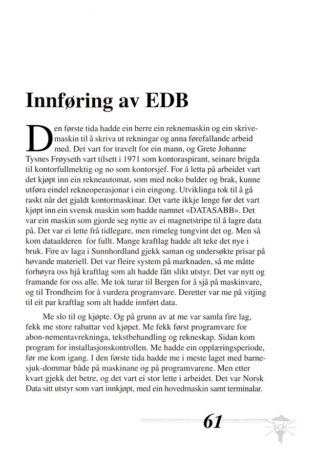 Boka gjev ei samla framstilling av historia heilt frå oppstarten i 1946, og skildrar korleis elektrifiseringa forma lokalsamfunnet.