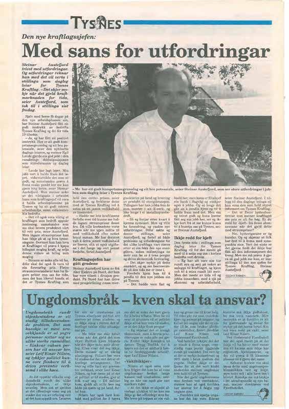 Året etter, i juli 1997, tok Steinar Austefjord til som elverksjef og dagleg leiar i Tysnes Kraftlag. Han overtok ansvaret for eit selskap som stod midt i ei brytingstid. Samstundes var det sterke motsetnader mellom ulike grupper av partseigarar og interessentar. Spørsmålet om kva slags rettsleg form Tysnes Kraftlag eigentleg hadde –om laget skulle reknast som eit samvirkelag, eit lutlag eller eit aksjeselskap – var langt frå avklart. Mange meinte dei sat på økonomiske eigardelar som burde gi rett til både innverknad og utbyte. Andre såg kraftlaget som eit fellesskapsprosjekt, der verdiane var bygde opp for å tena lokalsamfunnet som heilskap.