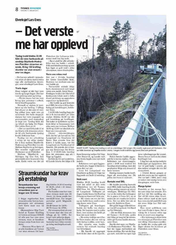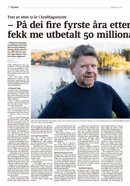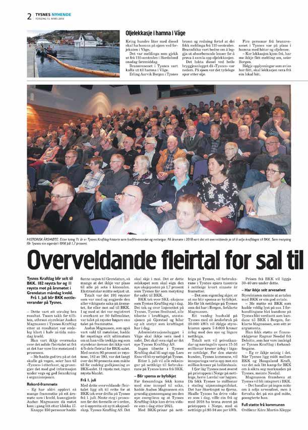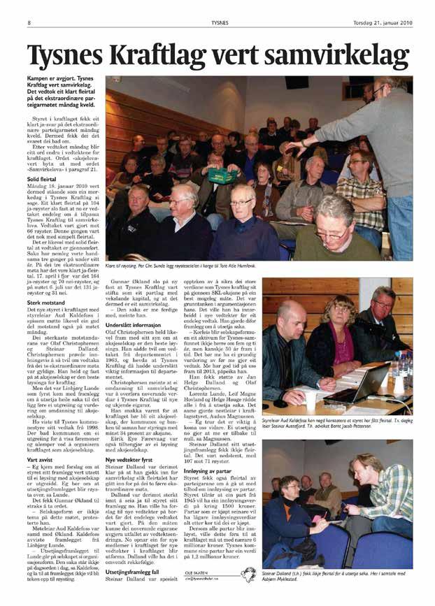 seia, og at ein ville mista kontrollen. Tysnes Kraftlag burde vera eit verk for alle innbyggjarane i kommunen – eit allemannseige – og at openheit var den rette vegen vidare, ikkje privatisering.
