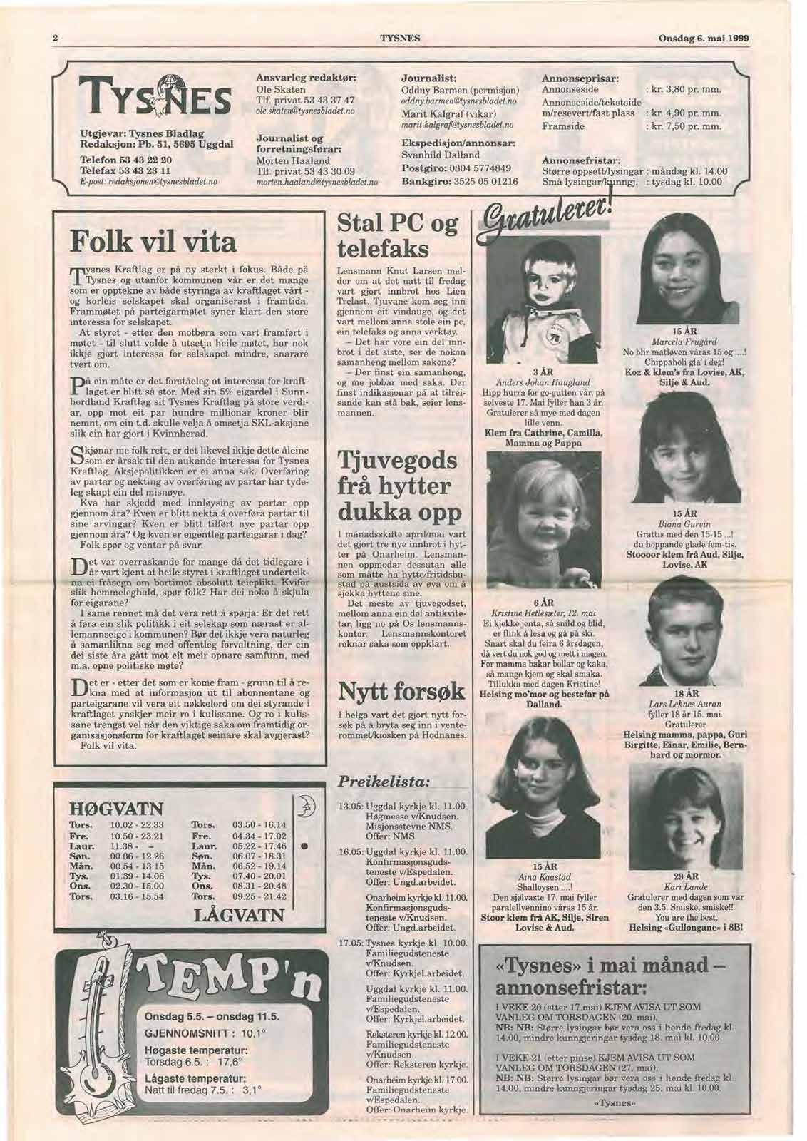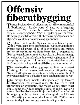 Leiarartikkel i Bladet Tysnes 6. mai 1999.