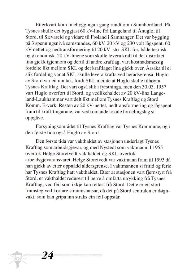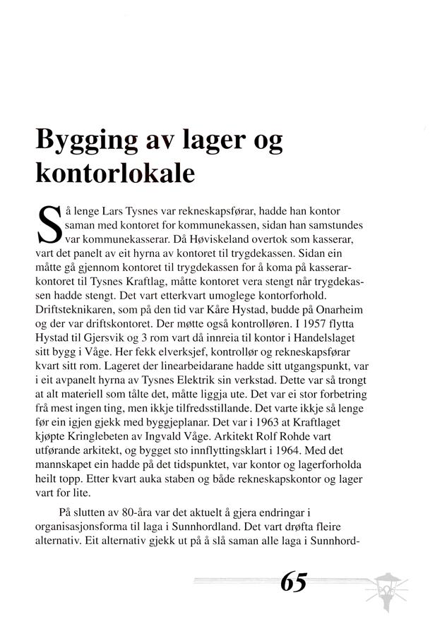 Tysnes Kraftlag har vore ein sentral del av samfunnsutviklinga i kommunen i fleire tiår. Historia om kraftlaget er difor òg historia om Tysnes – om engasjement, utvikling og vilje til å skapa noko saman.