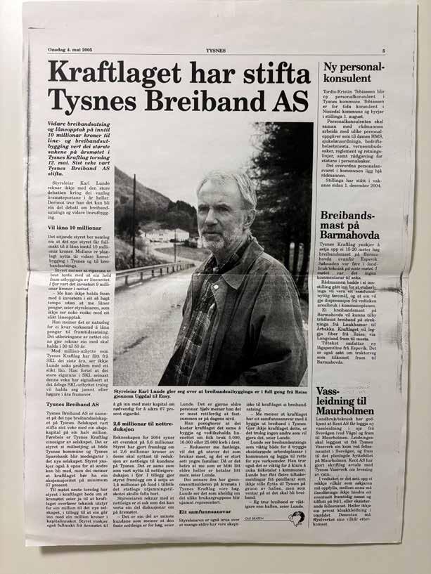 2005: Tysnes Breiband AS blir stifta og fibersatsinga startar.