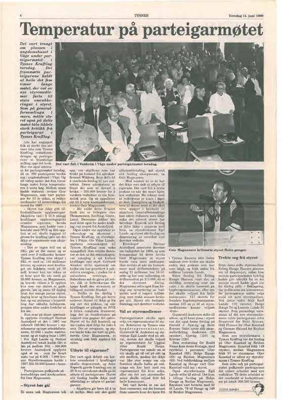 1998: Sterk konflikt om selskapsform. Generalforsamling avlyst. Ny styreleiar: Olav Kaastad. Karl Lunde kjem inn i styret.