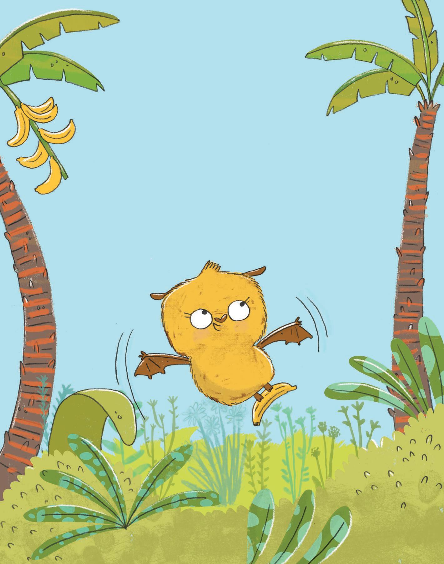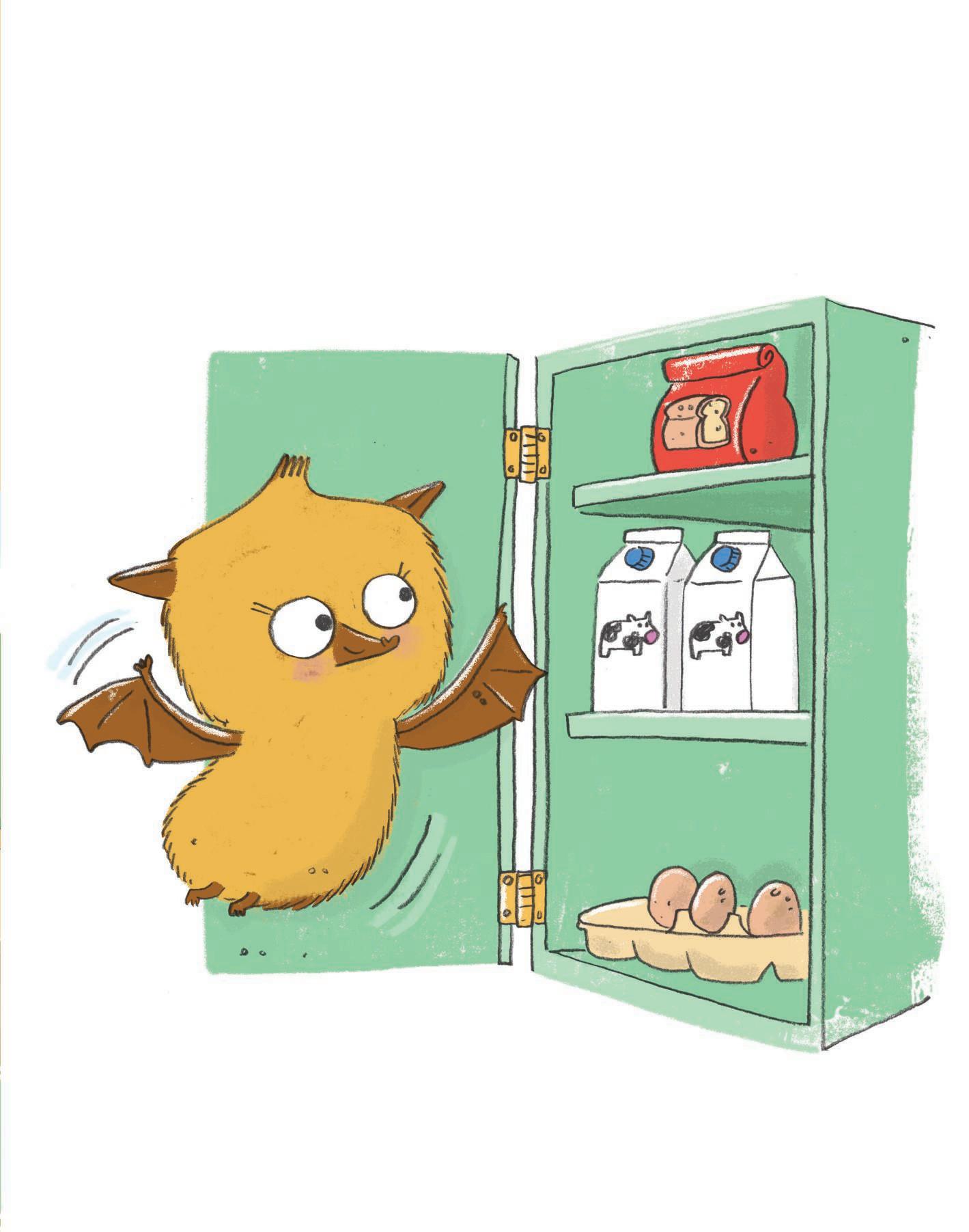 Meg looked in her cupboard. There was one bag of f lour, two cartons of milk, and three eggs … but there were no bananas.