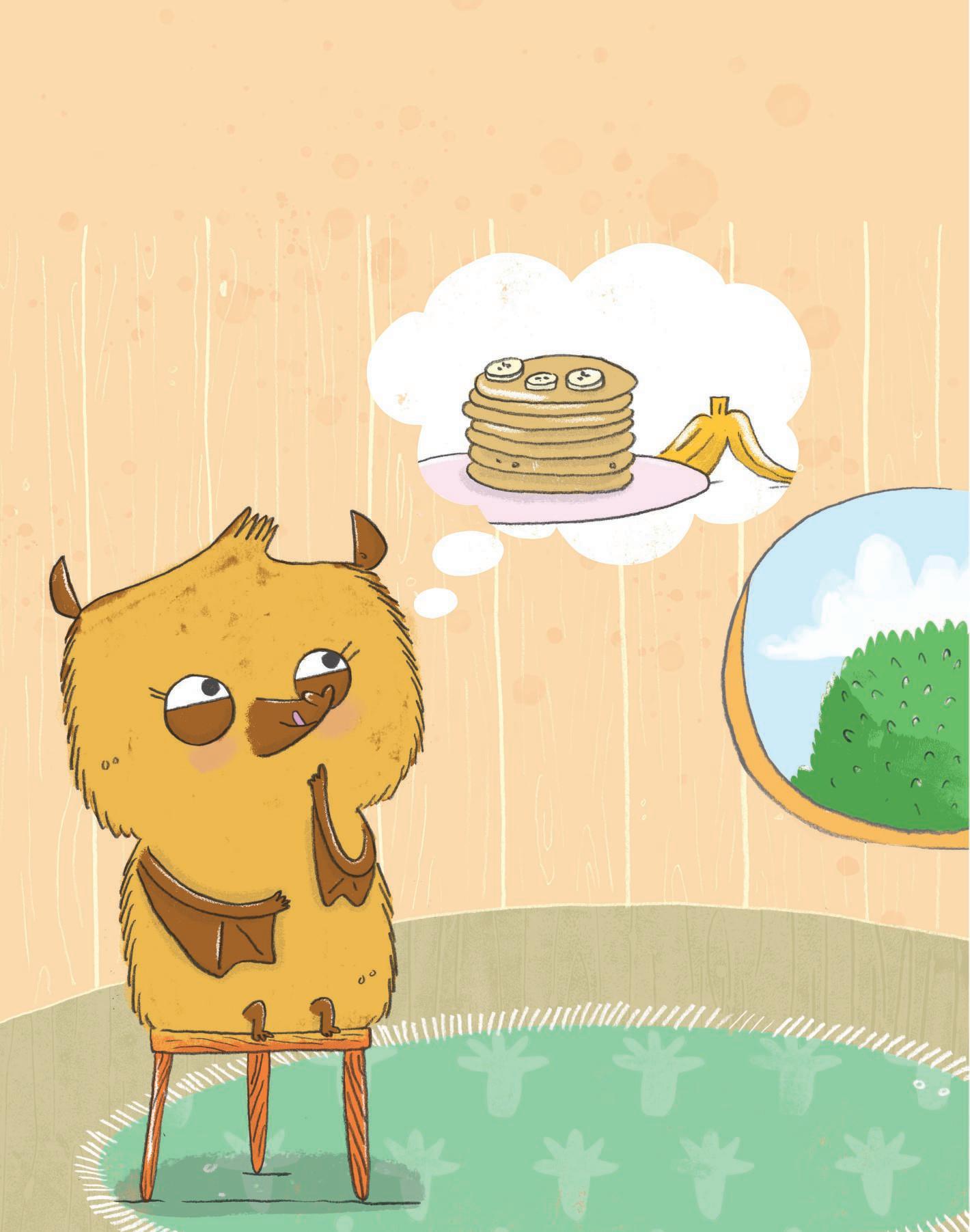 Meg’s stomach gurgled. It was time for breakfast. ‘Hmm,’ she said to herself. ‘I think I’d like some banana pancakes.’