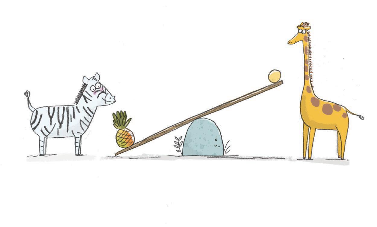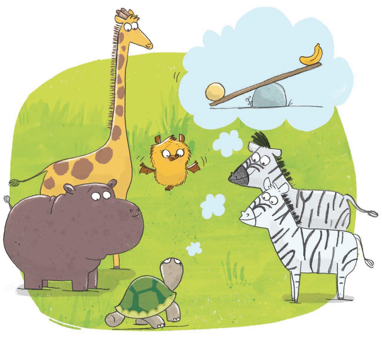 ‘We each have to look for a piece of fruit,’ said Sneaky. ‘The winner will be the one who finds the fruit which is heavier than the rest.’