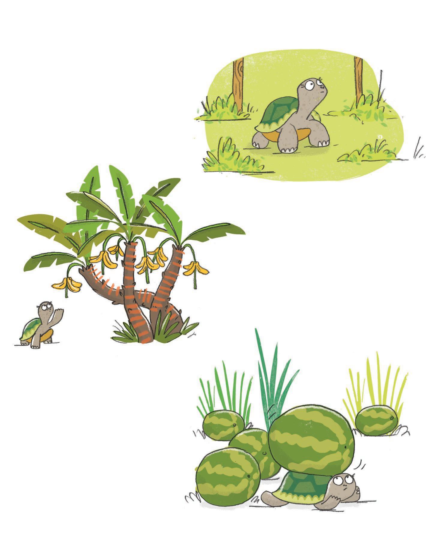 ‘Getting fruit is hard work,’ Sneaky thought. Then she had an idea. ‘Maybe I can trick some other animals into getting some fruit for me.’