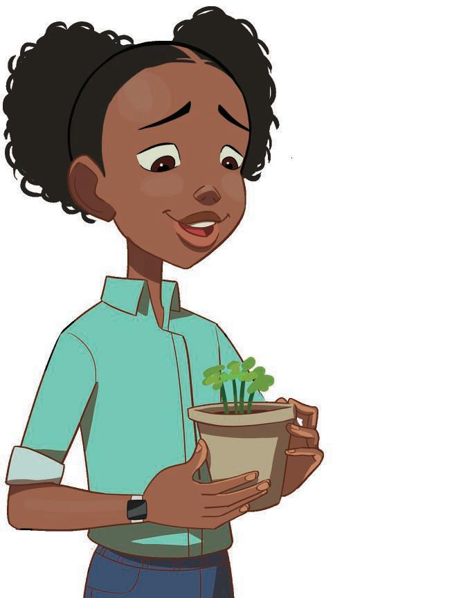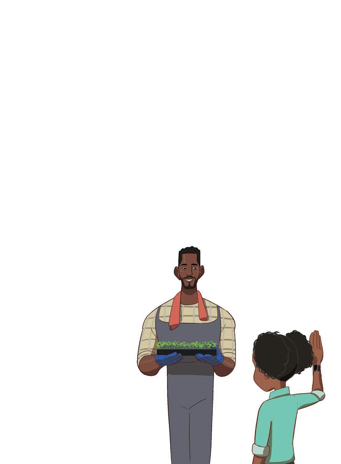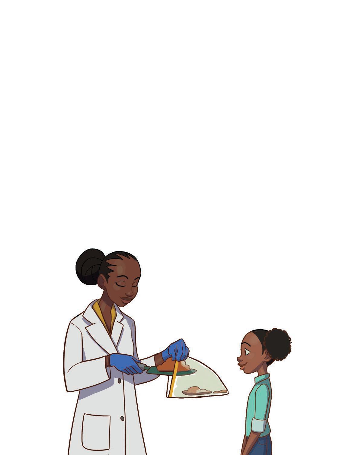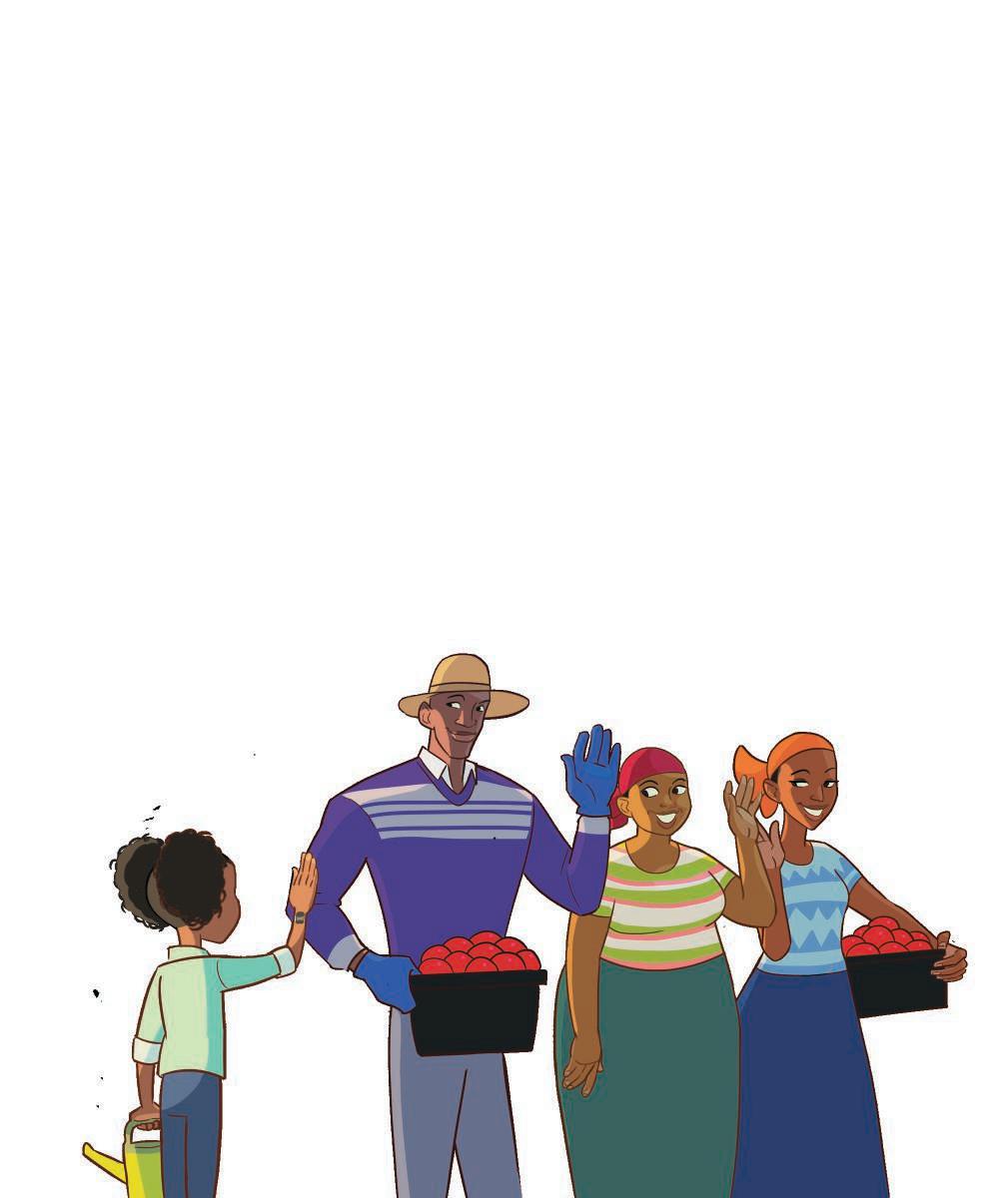 This is Esi. She is a soil expert. She visits the farm to tell Dad what the soil needs. Today she is taking some soil to test in her lab.