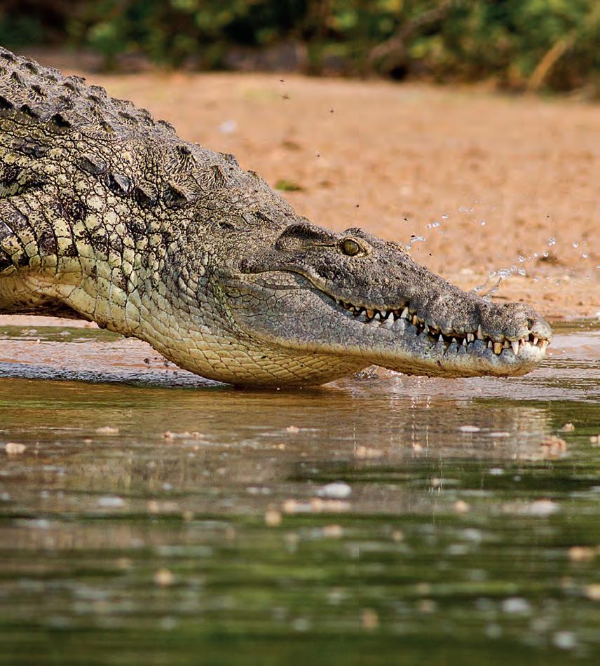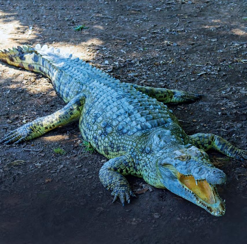 To warm up, crocodiles lie in the sun. To cool down, they rest in the shade or in cool water.