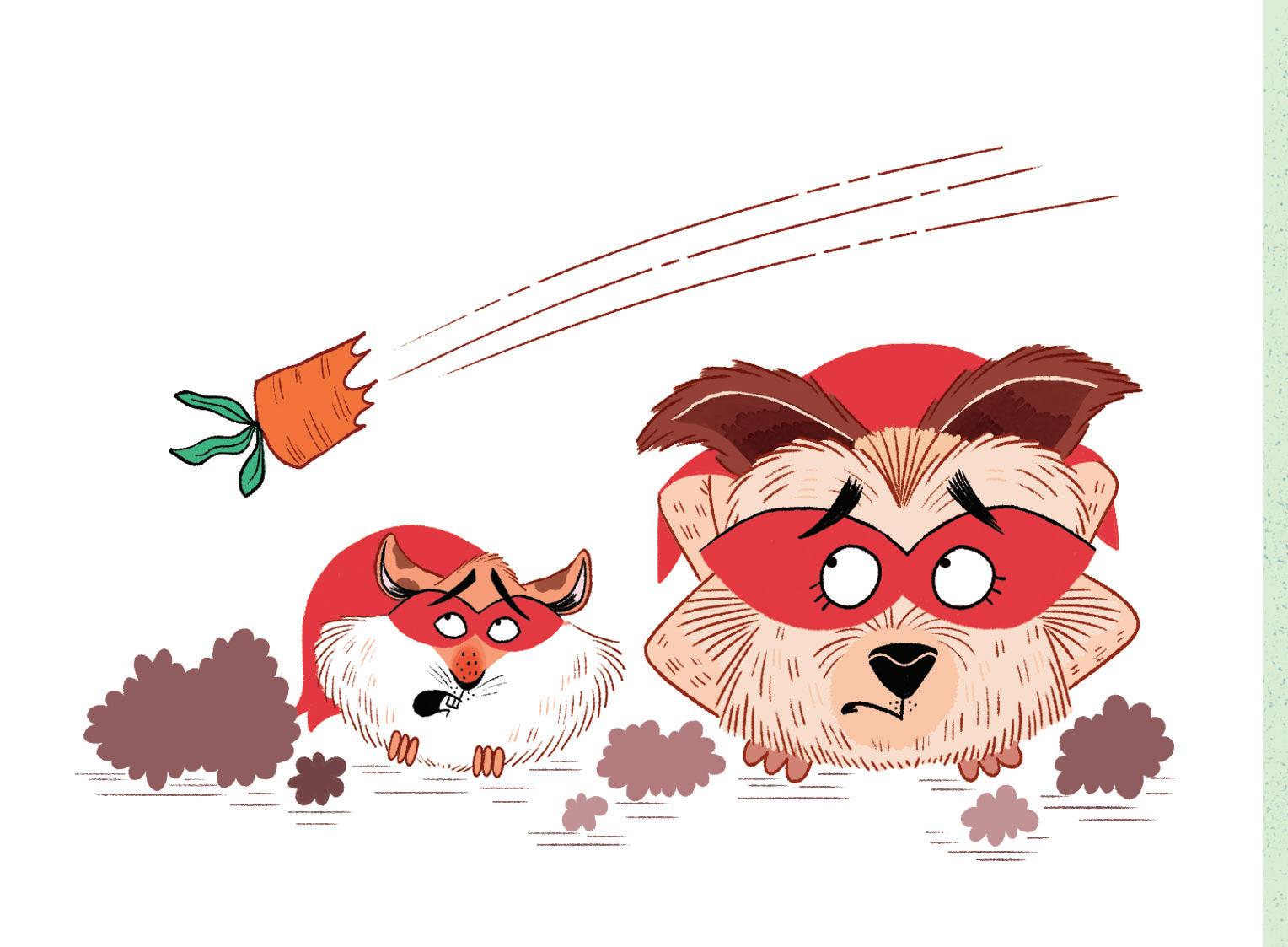 “Get down!” yelled Mega Merle. The heroes crouched down just in time. A bright-orange object whizzed over their heads. It was half a carrot!