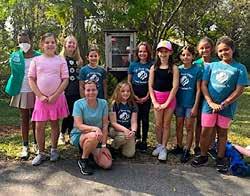 On Saturday, March 4, 2023, with all the logistics finally in place – and the Little Library appropriately renamed to honor both RuthAnn and John Gillooly – the girls arrived at Orchid Park to unveil their project officially.