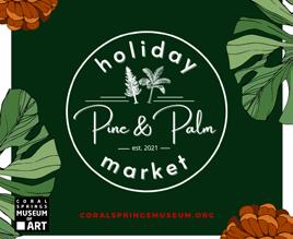Visit the 2nd Annual Pine and Palm Holiday Mar ket! The 2-day shopping event will be filled with original art and wares from local artists and mak ers. This is a great opportunity to “Sip, Shop and Celebrate!” the holidays with your friends and family. This year we have expanded our event to include a juried exhibition. 5:30 pm - 8:00 pm, Fri day, 10:30 am - 2:30 pm, Saturday. Hosted at the Coral Springs Museum of Art. For more info, visit www.coralspringsmuseum.org.