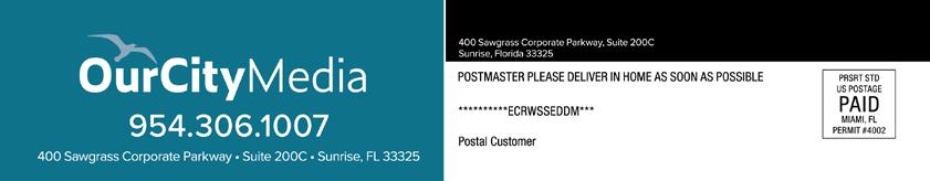 Our City Media of Florida, LLC publishes FREE monthly, local community news magazines throughout South Florida. Our City Media Magazines are mailed monthly to affluent single-family homes, condos and businesses in their respective communities. Monthly mailings are verifiable by USPS postage statements. Additional free copies are available at selected locations throughout the communities served and upon request by contacting the publisher. Opinions expressed by the writers are their own and do not necessarily reflect the opinions of the Publisher. Our City Media of Florida, LLC reserves the right to edit and/or reject any editorial or advertising content. Our City Media of Florida, LLC is not responsible for errors in advertising beyond the cost of the space or for the validity of claims made by advertisers. Entire contents copyrighted 2023 by Our City Media of Florida, LLC. Reproduction in whole or in part is forbidden in any media without prior written permission from the publisher.