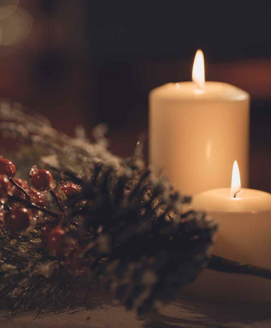 ▸ When burning real candles, keep them at least 12 inches away from anything that can burn, and remember to blow