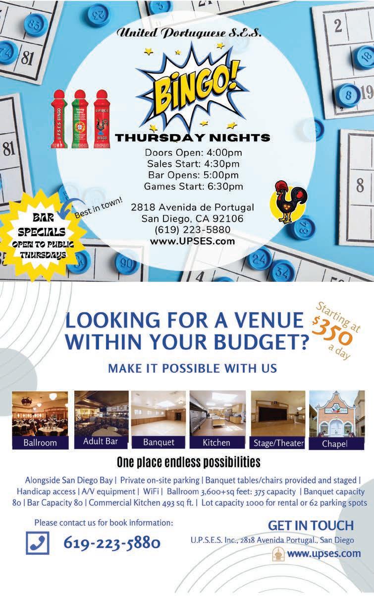 20 BUSINESS DIRECTORY APARTMENT LIVING Avalon Bay Communities .................... 15 AUTO REPAIR SHOP John’s Automotive Care ......... Back Cover BANQUET HALL United Portuguese SES Inc .......... Front Cover, Back Inside Cover CUSTOM SIGNAGE Neon Jungle .......................................... 17 EVENT VENUE United Portuguese SES Inc .......... Front Cover, Back Inside Cover GARBAGE COLLECTION SERVICES Junk King San Diego ............................. 5 HOTEL Kona Kai Resort & Spa ........................... 3 JUNK REMOVAL MORTGAGES Liberty National Lending Group .......... 4 MUSIC VENUE La Jolla Music Society ............................ 9 NEWS STATION FOX 5 News So San Diego ............. 7, 13 NON PROFIT Red Cross ........................ Front Inside Cover PERSONAL INJURY Law Office of Barry Pasternack ............ 4 PORTA POTTY RENTALS Diamond Enviornmental Services...... 15 RESORT Kona Kai Resort & Spa ........................... 3 SIGN COMPANY Neon Jungle .......................................... 17