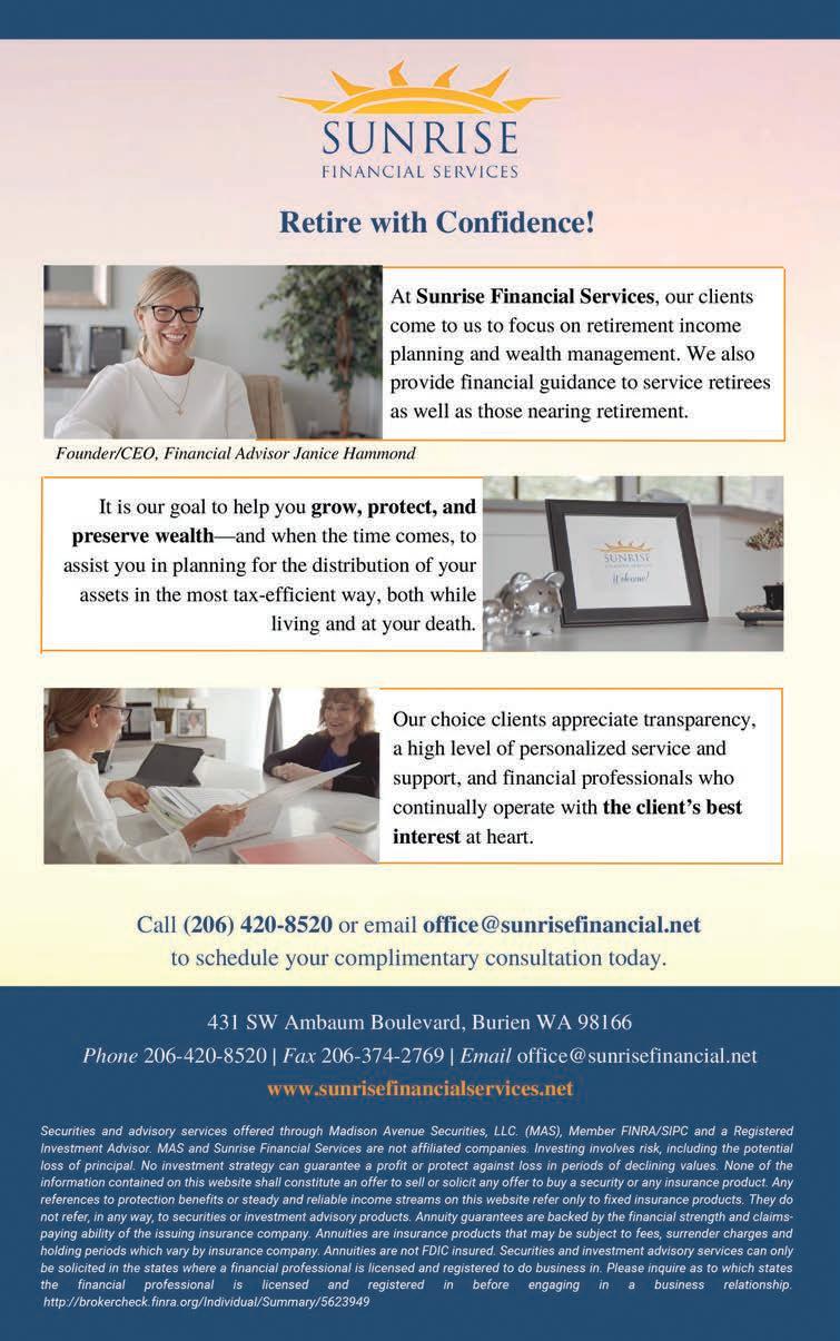 PLANNING Sunrise Financial Services .......... Back Inside Cover Rosalyn HansonNorthwestern Mutual ........................... 21 FLOORING Floor & Decor .......................................... 9
