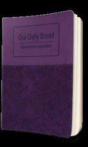 Our Daily Bread Ministries Make each day count! Start them off with interesting and inspiring meditations from Our Daily Bread. Available in Rich Brown or Purple Rose covers. SU092 Rich Brown, leather-like $19.99 ZK673 Purple Rose, leather-like $19.99