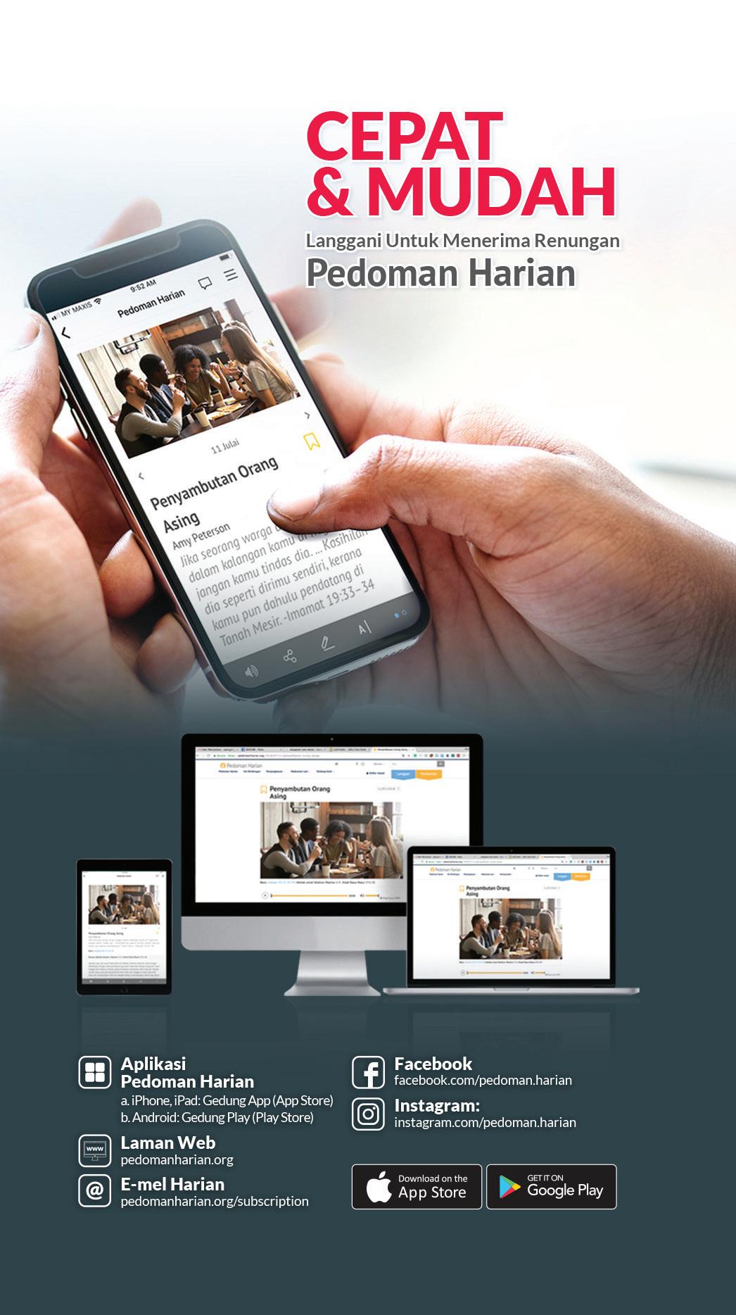 Dia, kita boleh mengenal Pencipta kita dan mengalami berkatNya yang indah—memenuhi keperluan kita yang paling dalam; memberikan harapan yang bertahan walaupun dalam saat-saat yang mendesak; pengampunan atas dosa kita, serta peluang baru untuk