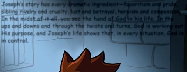 Joseph s story has every dramatic ingredient—favoritism and pride, sibling rivalry and cruelty, lust and betrayal, heroism and compassion. In the midst of it all, you see the hand of God in his life. In the ups and downs and through the twists and turns, God is working out His purpose, and Joseph s life shows that, in every situation, God is in control.