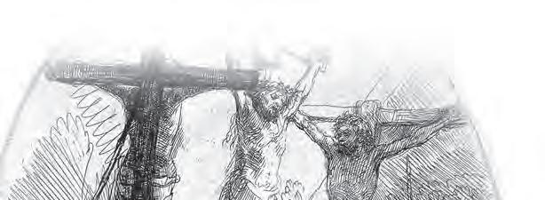 十字架的嘲弄與威榮12 守」,而不是坐 着 觀看。這個畫面想到就叫人心寒,他 們對于十字架上的慘狀無動于衷,若無其事地觀看一個 無辜之人被活活處死! 這些圍觀者提醒我們,我們是多么輕易、且善于開 脫,以為作錯事情可以不必承擔。倘若我們不明白是我 們的罪把耶穌送上十字架,我們就不可能為 着 祂的犧牲 而感恩,且為主而活。當我們抬頭仰望基督時,看到了 什么?我們能否坦然承認,是你、是我把耶穌釘上了十 字架?我們能否理解,基督在十架的犧牲,是對付人類