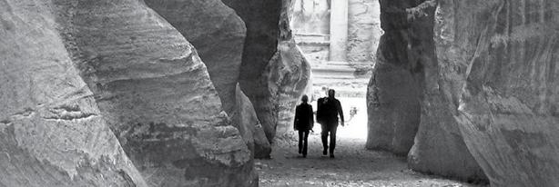 5 (一) 失落的樂園 位于約旦的西克峽谷(Siq)是通往古城佩特拉 (Petra)的狹窄通道,步行其中真是個難忘 的經歷。這條通道長約 1.6 公里,寬度不超過 6 公尺, 其中保存 着 兩千年前留下來的成排神龕、引水道和 崗哨的遺蹟,昭示 着 曾有三萬人在這個沙漠之城居 住的盛況。 當我們正穿越峽道時,嚮導突然叫住了我們,
