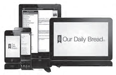 Our Daily Bread is now available in two mobile versions. Now you can get instant access and spend quiet moments with God anytime, anywhere. The app offers daily scheduled reminders; links to related Bible passages; and allows you to journal, bookmark, and share via social media.
