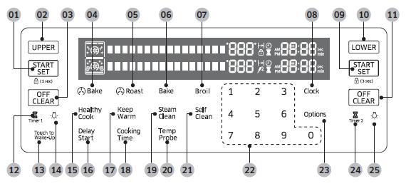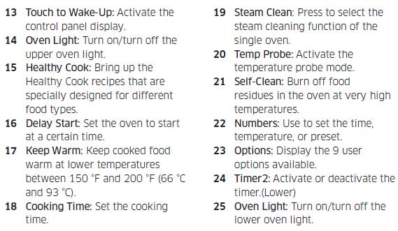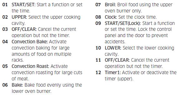 OVEN: The oven is a little more complicated. Please see instructions at the end of the guide for all the bells and whistles. The quick guide is to touch the screen, select the upper or lower unit, and then select the function, such as bake. Easy. Please note that there is a trigger on the handle that will allow you to open one or both of the over doors. Also, there is a divider you can take out if you need a full size oven.