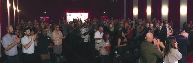 As the sold-out audience absorbed the devastating story, Gaston then joined Stefano May in a bold rendition of Labi Siffre’s anti-apartheid song, “Something Inside (So Strong).” The crowd leapt to its feet.