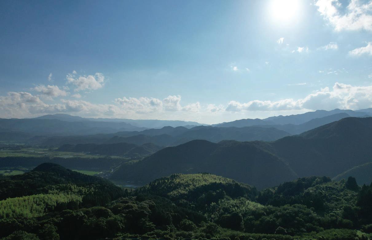 the rapids on a raft. Still others seek out the town’s renowned culinary culture, supported by its pure water. The Kuma River’s 80 tributaries and vast watershed cover one quarter of the prefecture, sustaining vast fields of rice and green tea as well as orchards bearing fruits and nuts.