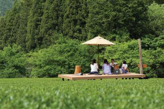 harvest—delicious bancha (tea) varieties picked throughout the year—is worth it. On hot days, she combines green tea with soda water and pairs it with green tea panna cotta while cooler days see her preparing cups of steaming hot green tea and baked goods, all served amidst the gently rolling hills.
