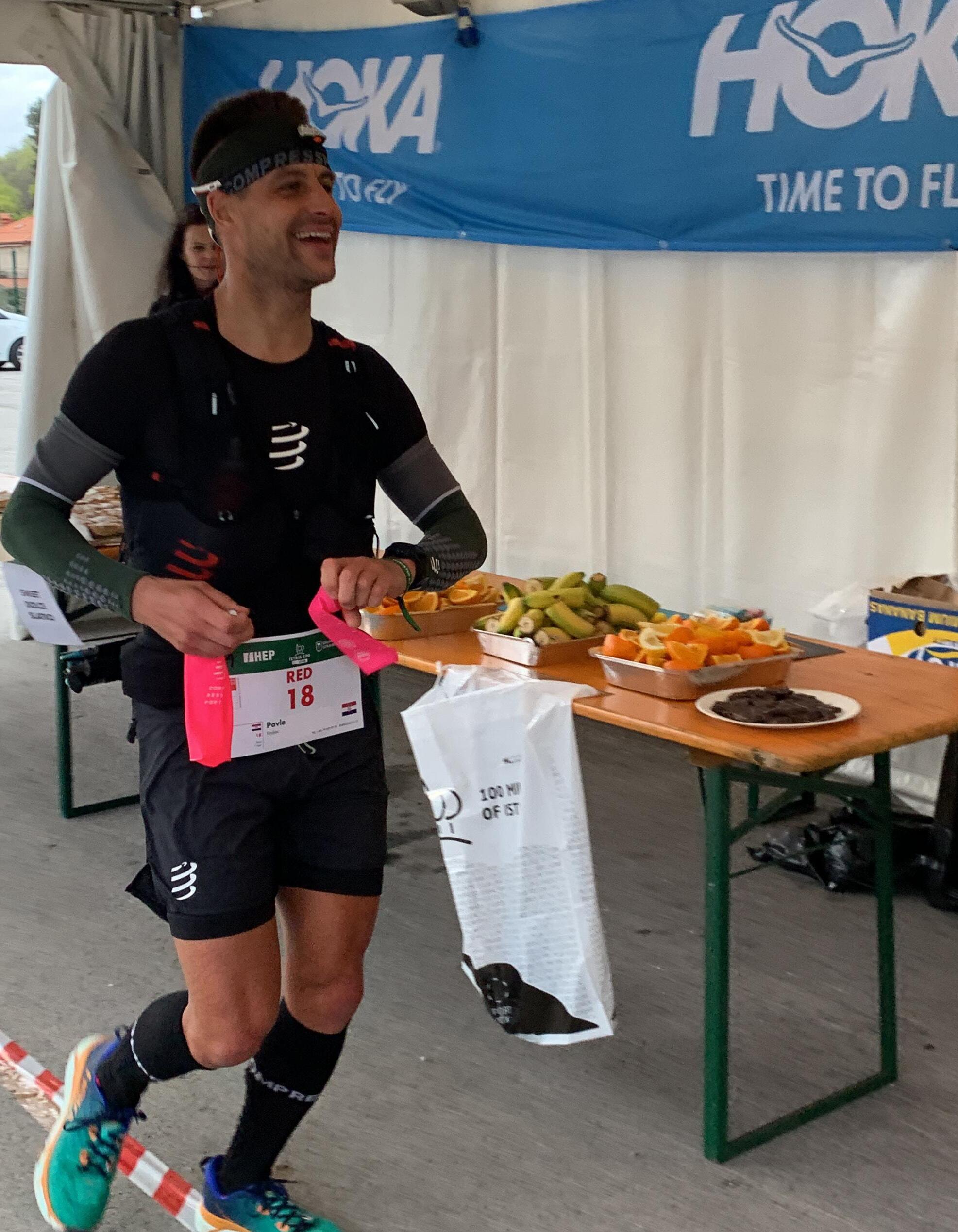 D: Sigurno ključni trenutak, a i najveći izazov je bio kada sam ozlijedio kvadriceps. Pred kraj treće noći pri (još) jednom spustu osjetio sam žarenje na medijalnom kvadricepsu lijeve noge. Peckanje je vrlo brzo došlo do faze da nisam mogao saviti lijevu nogu što je ionako već beskrajno duge spusteve pretvorilo u još dužu agoniju. Kako se pri ovakvoj utrci percepcija potpuno izmjeni, van svake normalne logike, odlučio sam da ima “samo” još lakših 110 km (s nekih 7-8000 m spusta) do kraja pa ću stisnuti zube.