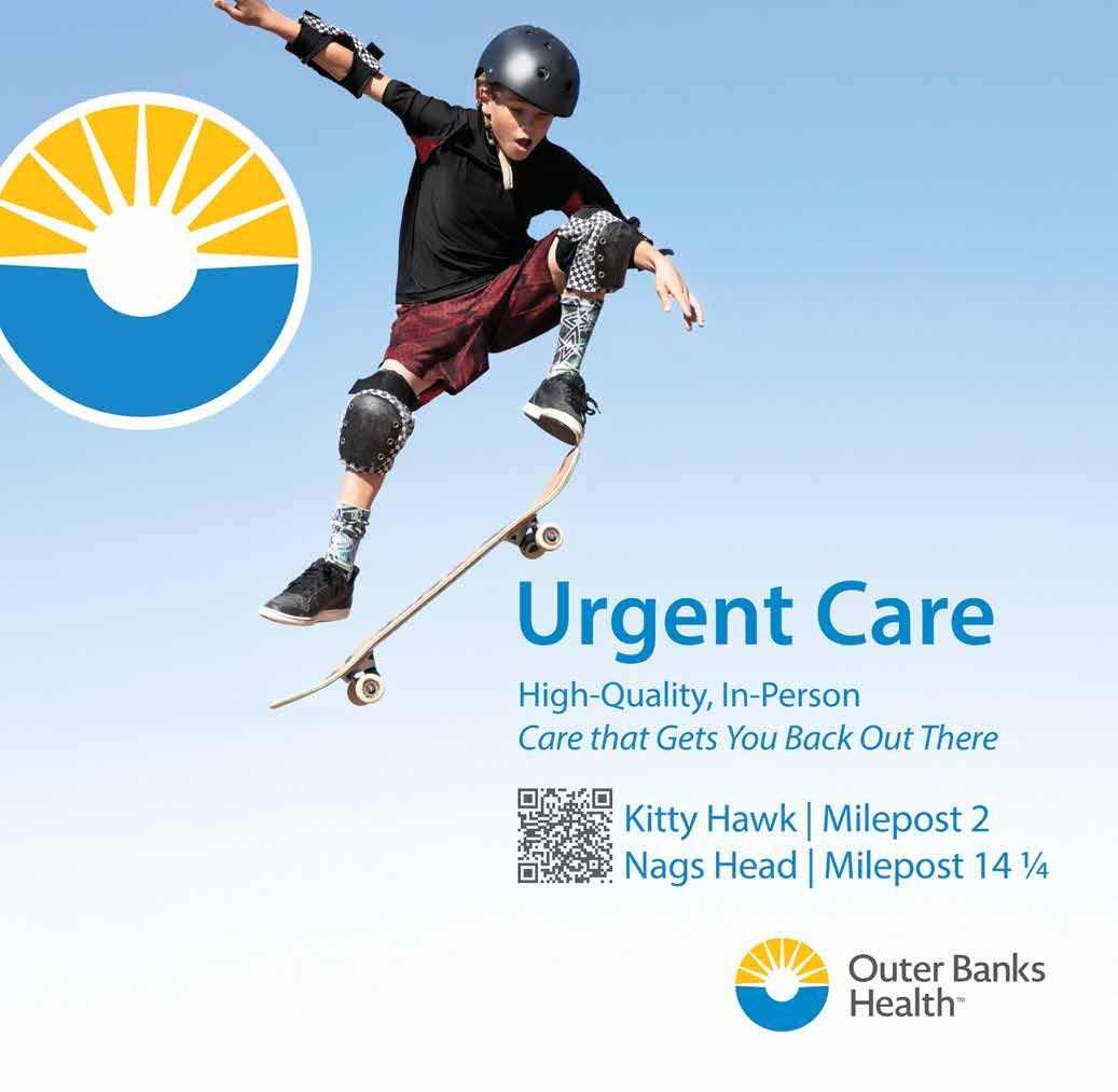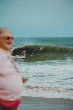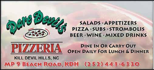 looks like our nation’s birthday is bumping Downtown Manteo’s favorite street party to July 11 this year. But don’t worry. From 6-8pm, you still get the same fun combo of later shopping and live bands about town — including The Rea Family Band, Bri Young, and the Kill Devil Kats. And there’s still a 6-8pm opening reception for two fresh Dare Arts exhibits: woodwork and ceramics by Buddy Terrell and oil paintings by KDH’s Iryna Welch. (Both stay on display July 4-26; more at www.darearts.org.) Plus meet local author Greg Smrdel inside Downtown Books at 6pm. • Or toast many years of tasty beers with back-to-back Swells’a Brewing Anniversary Parties: starts July 13 at the Duck Dive Bar with your musical master emcees The Yacht Dogs; come July 14, KDH’s flagship locale will rage on with Dalchord and special guests. Find more tasty deets by following @swellsa_brewing and @ swellsa_duck_dive. • Then cheer on a wave of feelgood surf events — and full-on battles — at Jennette’s Pier. Starts July 16-17, when our local town’s ocean rescue teams face squads from SNC to FL in sand challenges and swim events as part of the South Atlantic Lifesaving Association Regional Lifeguard Championships. (Find deets www.salausla. org ). And everyone’s a winner when Surfing for Autism introduces kids on the spectrum and their families to the ocean’s healing powers, July 19. (More at www. surfingforautism.org.) And from July 25-27, heaving shorebreak hurls humans sky-high with the return of our nation’s biggest skimboard competition, the OBX Skim Jam. Hit www. skim-usa.com for updates. • Don’t look down! On July 18-19, Kitty Hawk Kites’ Wright Kite Festival will festoon the Wright Brothers National Memorial skyline with floating 50-foot fabric creatures, plus free stunt and power kite flying lessons — and kite-making stations for kids. Free to participate; but the park charges $10 for ages 16+. 10am-4pm. Flutter over to www.kittyhawk.com for more. • What happens when jaw-dropping guitar acrobatics and high-flying vocals converge? Find out at the Tap Shack, July 18 & 19, when