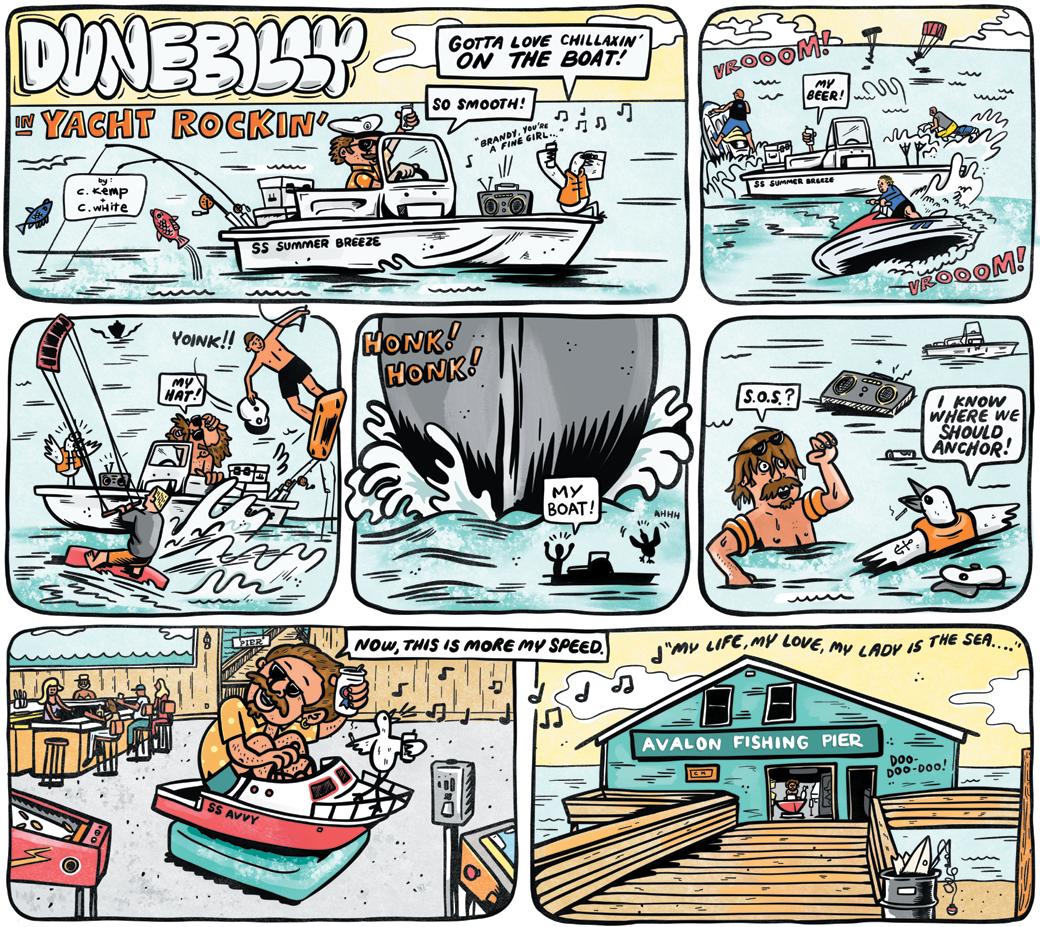 Fishing License if you’re 16 or older. Visit www.manteonc.gov for deets. • Then it’s time for the big girls and boys to battle for huge prizes and bragging rights at Pirates Cove. Starts with Aug. 9-10’s Alice Kelly Memorial Ladies Only Billfish Tournament, where allfemale crews wrestle sea monsters to raise money to fight cancer. Then, from Aug. 11-15, the Pirate’s Cove Billfish Tourney sees top captains hunt more giant specimens — and massive foam checks. Both come with awards parties and nightly fun. Don’t wanna participate, but still wanna party? Check out Aug. 12’s Sailfish Social at the Pavilion from 11am-2pm. Full calendar at www.piratescovebillfishtournament.com. • Save Aug. 11 for the biggest and best locals party of the year, as the 4th Annual Shake Hatteras Music & Arts Festival returns to Rodanthe. Details were hazy at press time, but you can count on killer bands and DJs, tasty food, and top-notch vendors — plus the funnest ragtag crew of cool peeps you can imagine. Keep tabs on @shakehatteras for updates. • From Aug. 14-15, it’s the kids’ turn to celebrate our collective love for shady characters, when the Outer Banks Pirate Festival returns to Kitty Hawk Kites in Nags Head. From 11am-3:30pm, learn about how these coastal marauders made local history, then sign-up your little buccaneers for Scallywag School to see if they have what it takes to join Blackbeard’s crew. Registration and pricing at www.kittyhawk.com. • “Safety first” is the thrust of Aug. 26’s Back To School Tues. at Dowdy Park, where preschooland school-aged kids enjoy hands-on activities covering issues from bike safety to cross walks — plus snacks and goodies from local police and fire depts. 4:30-6:30pm. Get the full scoop on their Facebook page. • But safe surfing is the last thing you’ll find at Jennette’s Pier, Aug. 27-31, as Wave Riding Vehicles’ Outer Banks Pro Presented by Pacifico delivers top World Surfing League athletes for four-days of dizzying heats on land — and killer nightly parties at local watering holes. Find scheduling and live coverage at www.wrvobxpro.com. • Finish the summer with a real “Celebration,” Aug. 30, when the Live from OBX Concert Series brings Grammy-winning funk legends Kool & the Gang to Roanoke Island Festival Park. 6:30pm start. Jungle boogie over to www.livefromobx. com for tix. • On Sept. 3 & 4, two dozen artists create a symphony of creativity, when the OBX Arts & Craft Festival returns to Hilton Garden Inn, and proceeds help ring cash registers for three local charities: N.E.S.T., Beach Food Pantry and Coastal Humane Society. Wed.: 10am-5pm Thurs.: 10am-4pm. Find ’em on Facebook. • And, finally, Dare Arts invites up to 100 painters of every stripe to participate in Sept. 3-5’s “Fresh From the Outer Banks: A Plein Air Event.” This first-ever event challenges artists to set up outdoors between Duck and Hatteras Village, then submit complete works while the paint is still fresh. And everyone’s invited to attend Sept. 5’s opening reception, sponsored by the Don & Catharine Bryan Cultural Series, where judge Fen Rascoe will pick the winners. 6-8pm. Sign up and learn more at www.darearts.org.