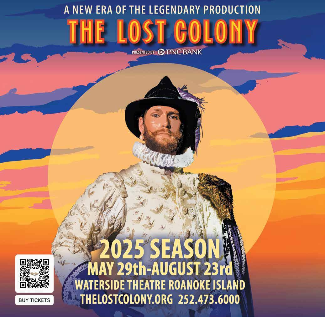 Brand new seasons. Fallen heroes. Salute them both, May 26, at Town of Duck’s Memorial Day Summer Kick-Off Concert, where the Town Green ripples with beach chairs, coolers and community pride — plus the patriotic sounds of the First Flight High School Band. 6pm. More at www.ducknc.gov. • Looking for cool stuff? Or just a spectacular sunset? Get ’em both any Mon. through Sept. 29, when Rodanthe’s Kitty Hawk Kites hosts the new Soundside Festival Series, where 40+ local vendors offer one-of-a-kind gear, plus live music, beer and wine, and tasty food by Good Winds. 4-8pm. Find updates on Facebook. • The evening drama continues all summer long at the Waterside Theater, where the 88th Season of The Lost Colony plays Mon.-Sat., from May 29-Aug. 23. Want a fuller experience? Try Tues., Fri. or Sat.’s Native Pre Shows, where indigenous cast members share stories, songs and dances. Find times, deets and tix — plus info on Backstage Tours and local discounts — at www.thelostcolony.org. • Then dig even deeper into our region’s Native American roots, May 30-31, when the Secotan Alliance presents, “In the Spirit of Wingina 2: Our Women...Our Words...Our Water. ” Starts Fri. at Manteo’s Virginia Tillett Center with presentations by academic and indigenous scholars (12-5pm), before Jennette’s Pier hosts live jazz by the Benjie Porecki Trio, plus indigenous flute, hand drum and poetry (7-10pm). Then, on Sat. morning, head to COA/ Manteo at 8:30am for some “coffee talk” with tribal experts about the indigenous earth ethic. Details and pre-registration at www.secotanalliance.org. • Shoot the breeze with fellow wind enthusiasts at Waves Water Sports Resort, May 30-31, when Kitty Hawk Kites’ Kiteboarding Kick-Off Weekend busts out gear, demos and the occasional badass trick from 10am-4pm. More at www.kittyhawk.com. • May 31’s all about the motorheads when the Sumospeed Beach Bash turns Nags Head’s Soundside Event Site into a pimped-out parking lot of sweet rides, rockin’ music, souped-up food trucks, and vehicular vendors. Cruise over to www.sumospeed.com for details. • Looking for a “sweet” bargain? Maybe a “honey” of a handmade item, or a “spicy” new look? Head to Manteo’s Downtown Market any Sat., where the stalls are chock full of unique flavors and one-of-akind finds. 9am-1pm. More at www.manteonc.gov. • Score locally grown produce and proteins — plus the occasional plant, pastry or piece of pottery — when Wanchese’s Secotan Market sets up every Sat. through Sept., 8am-12pm. Find a full list of producers at www.secotanmarket. com. • Feast your eyes on local flora and fauna — while consuming tasty educational tidbits — when Pea Island & Alligator River
