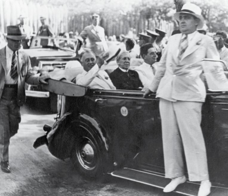 way to the waterfront, where “throngs of onlookers” lined the shady thoroughfares to catch a glimpse of him riding by in a sleek convertible.