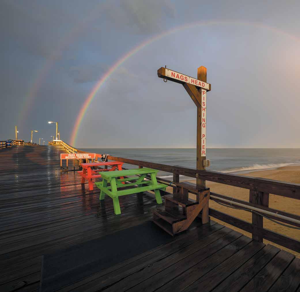questions. • Then enjoy two special out-and-proud performances for Pride Month! On June 10, head to Hi-Vibe Holistics Listening Room for Dare Arts’ Pride Project Open Mic Night, where LGBTQ+ community members and their allies will share songs, poetry, readings, theater, and comedy. 7pm. (Ages 18+. Sign up to participate at www.darearts.org.) Then, on June 14, Theatre of Dare will present The Laramie Project. This powerful true story of a gay man in Wyoming who was brutally beaten “explores the depths to which humanity can sink and the heights of compassion of which we are capable.” 7pm. Appropriate for ages 13 and up. Buy tix at www. theatreofdareobx.com. • Wanna see a wild pony without galloping up to Carova? On June 10, Meet a Banker Horse at Duck Town Park, where the Corolla Wild Horse Fund shows off a gentled mustang and shares details about how to keep these special creatures safe and thriving. 10am-12pm. (PS: Come back and do it again on Aug. 19.) Can’t hold your horses? Drive out to Grandy’s Betsy Dowdy Equine Center any Wed. through Aug. 27 for Mustang Mornings at the Farm, where you can meet more rescue success stories, ask the staff questions, and enjoy a free screening of The Secret of Corolla. 10am-2pm. Suggested donation of $10 per vehicle at the gate. More at www.corollawildhorses.com • On June 11, herd the kiddos to Outer Banks Pier Nags Head Pier Avalon Pier Jennette’s Pier, as the Fritz Boyden