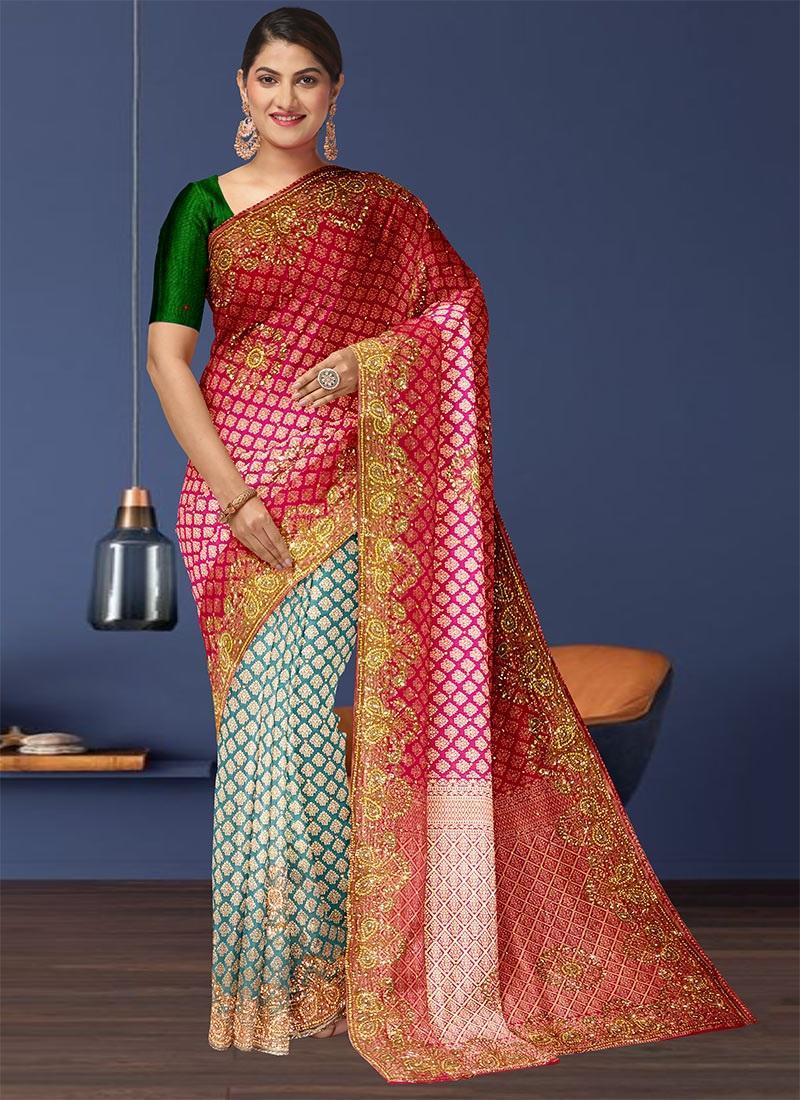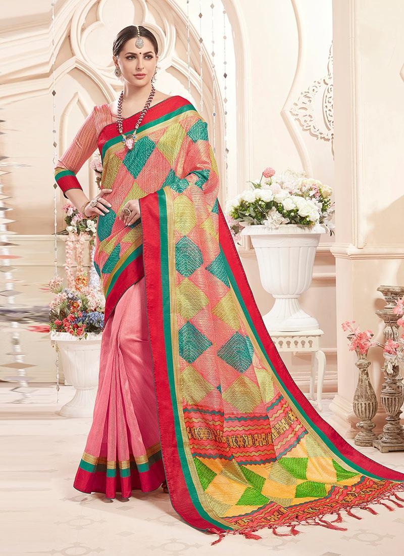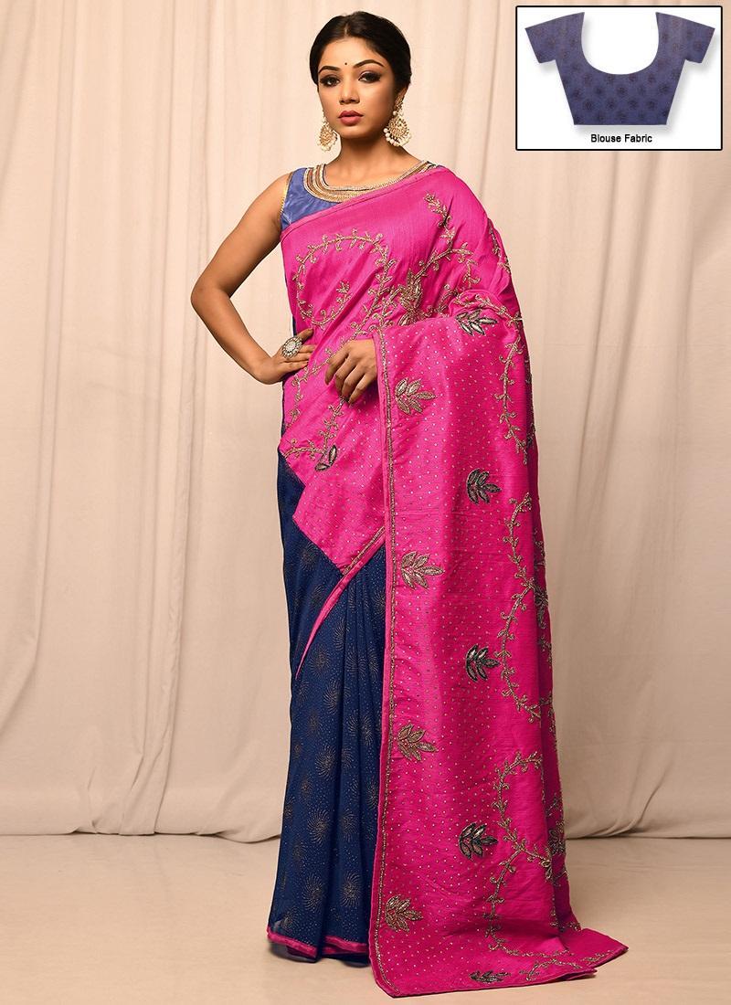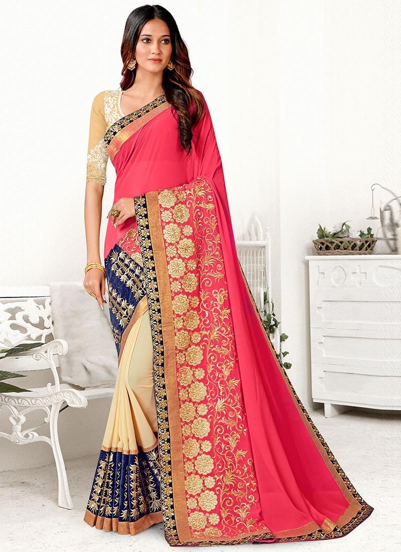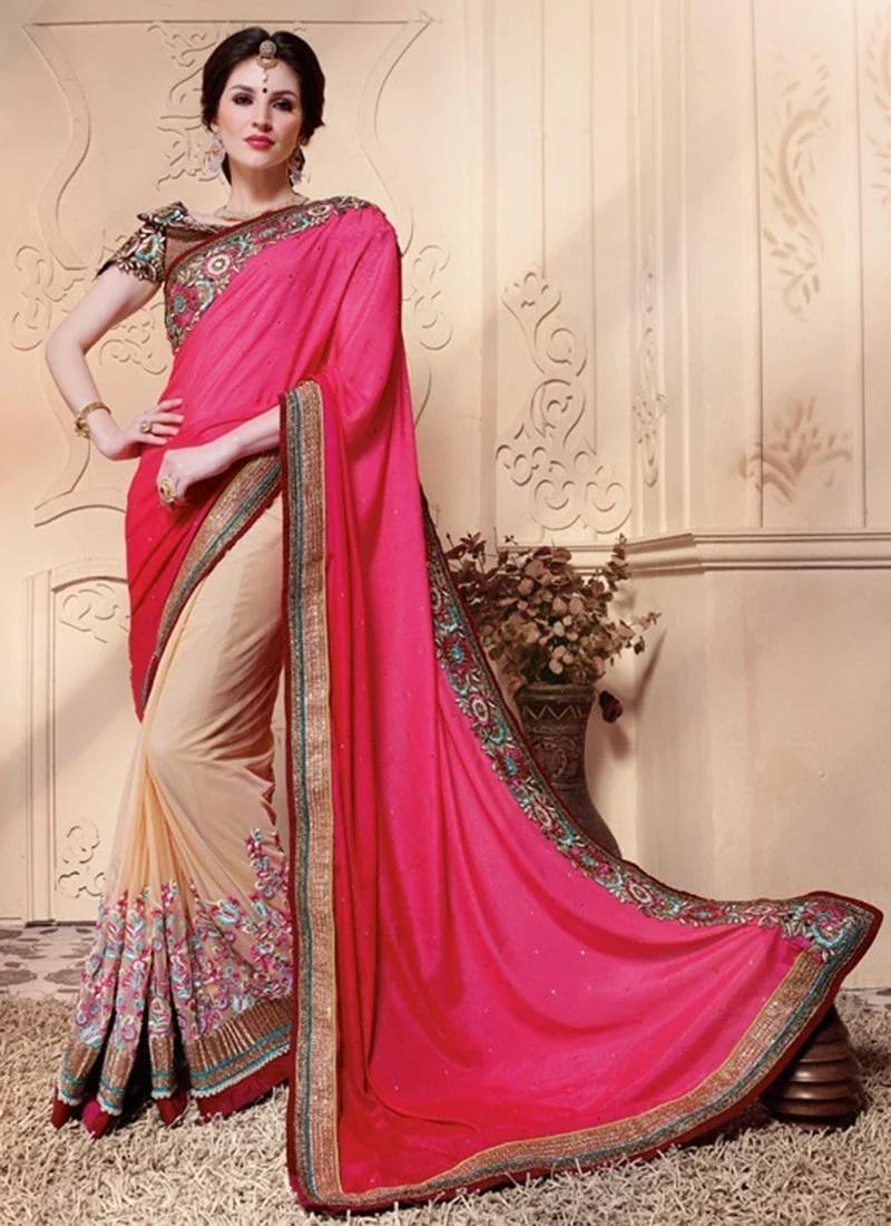 Pinkhalfandhalfsarees arethemostattractive collectionsofall.The halfandhalfsareeare madeindifferentfabrics andindifferentcolours.