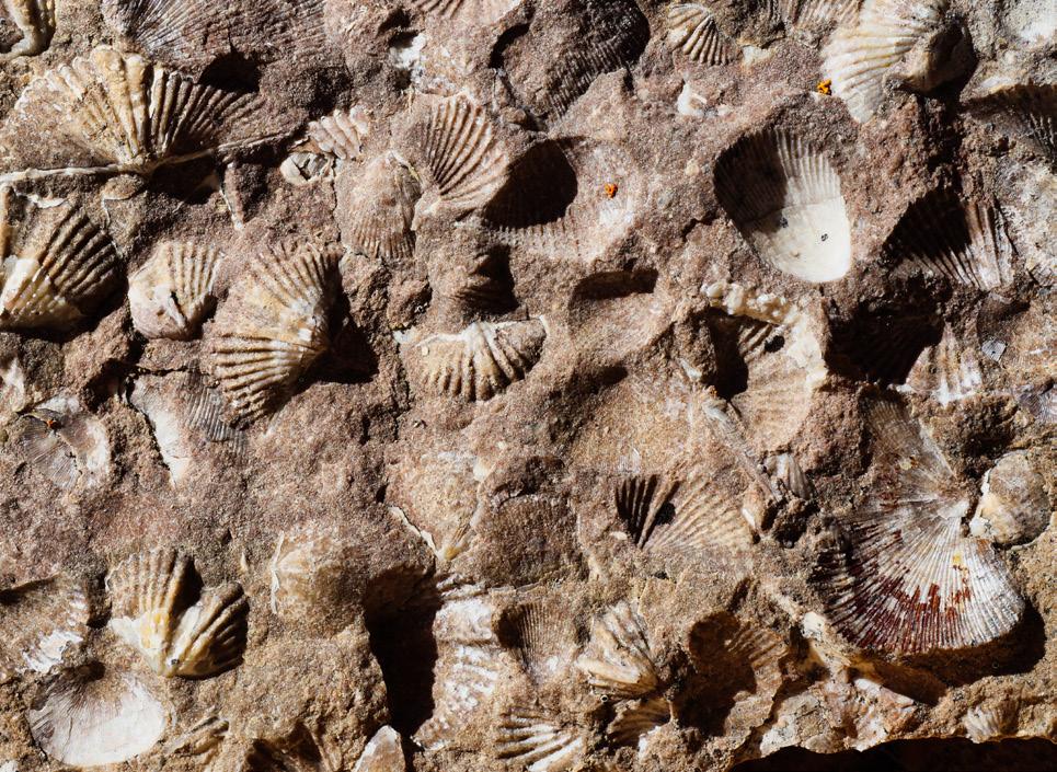 FOSSIL SHELLS, BRACHIOPODS, FROM THE GALLATIN CANYON. SHELLS ARE ABOUT 1 INCH LONG. PHOTO BY PAUL SWENSON
