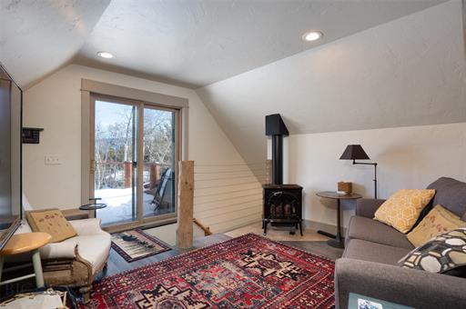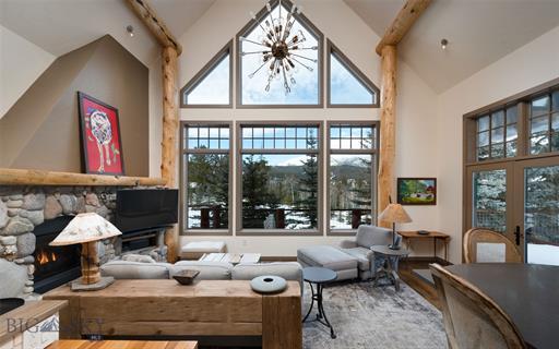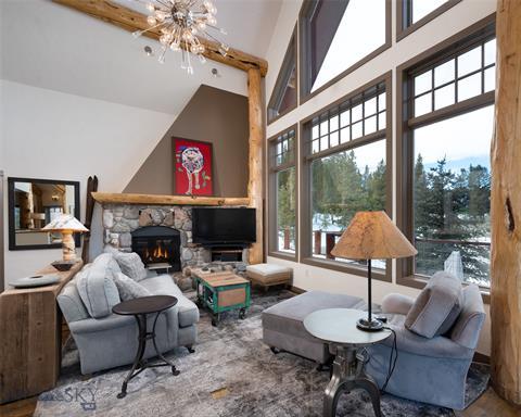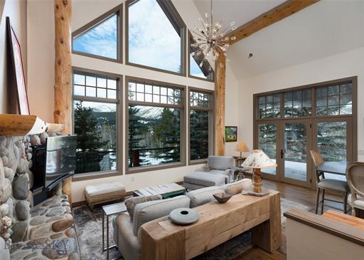 170 Gray Owl through the Aspen Grove Main level Living Room with wrap around deck access