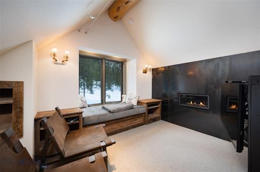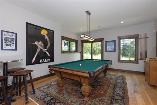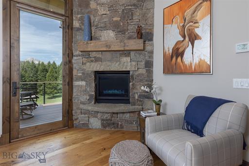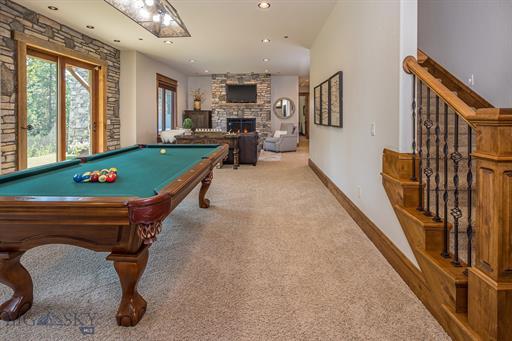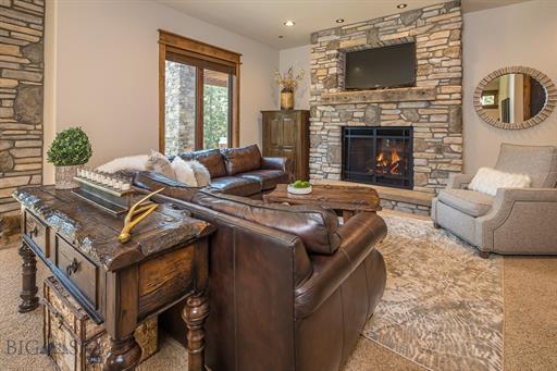 Lower Level Living Room with gas fireplace, TV, access to private patio and hot tub.