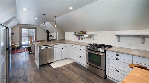 Upstairs kitchen. Custom cabinets, stainless appliances ( Jen Air and Bosch ).